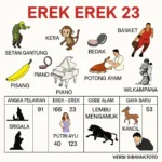 Erek Erek 23 SIBAYAKTOTO diisi simbol-simbol unik:setan gantung, kera, bedak, pemain basket, pisang, piano, potong ayam, Wilkampana, srigala, buaya, putri ayu, pompa bensin, lembu mengamuk, pohon, kancil dan sosok pria merenung. Menurut tabel Buku Mimpi 2D bergambar 00–99, angka 23 memang dikaitkan dengan rangkaian: setan gantung – kera – bedak – basket – pisang – […]
